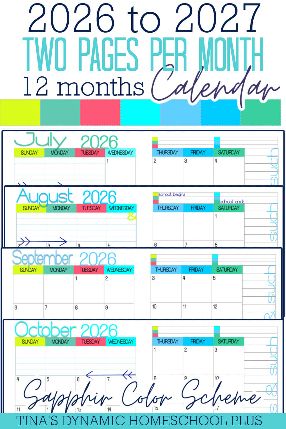 Beautiful And Colorful Printable Calendar 2026 to 2027